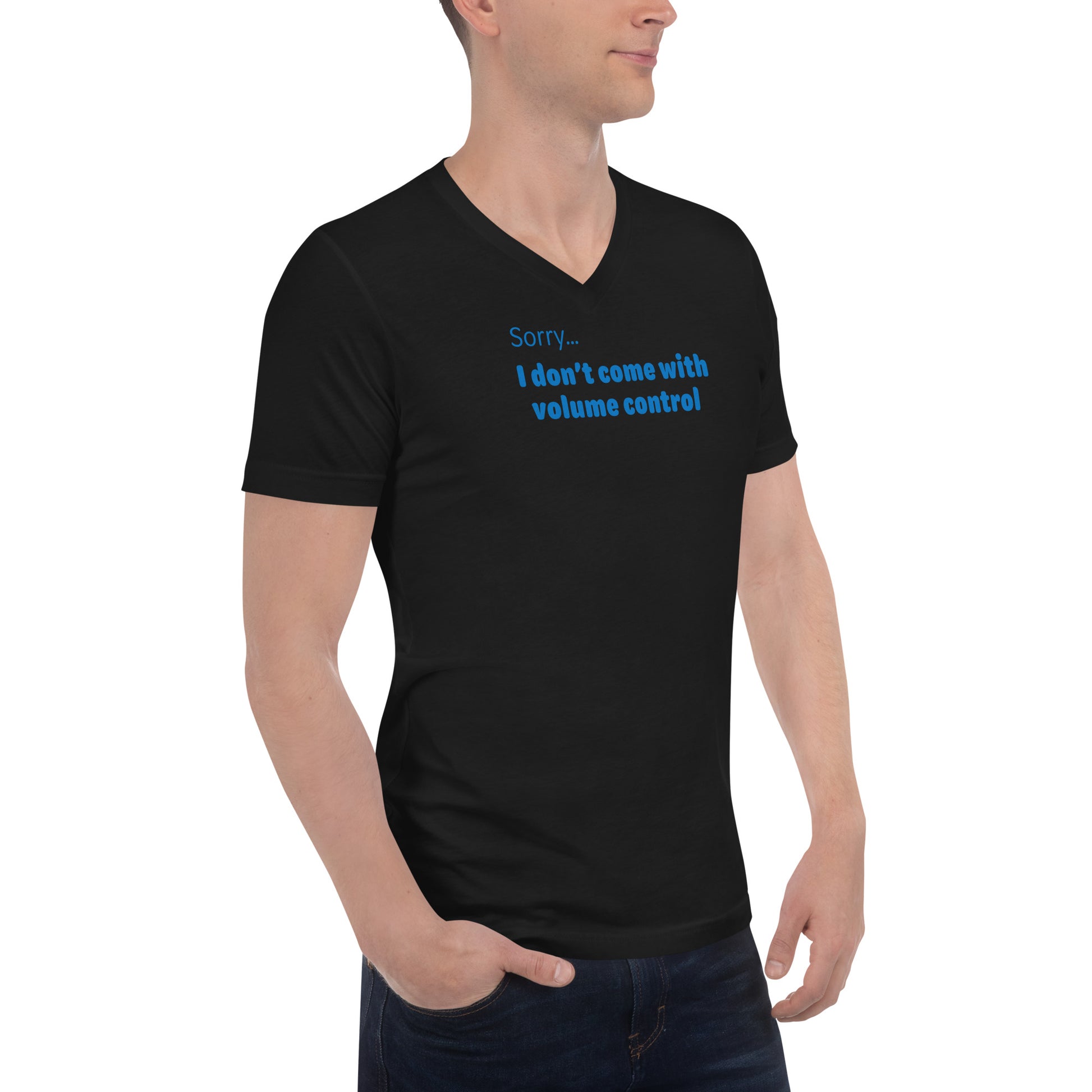 Volume Control - Blue Text - Mens V-Neck T-Shirt